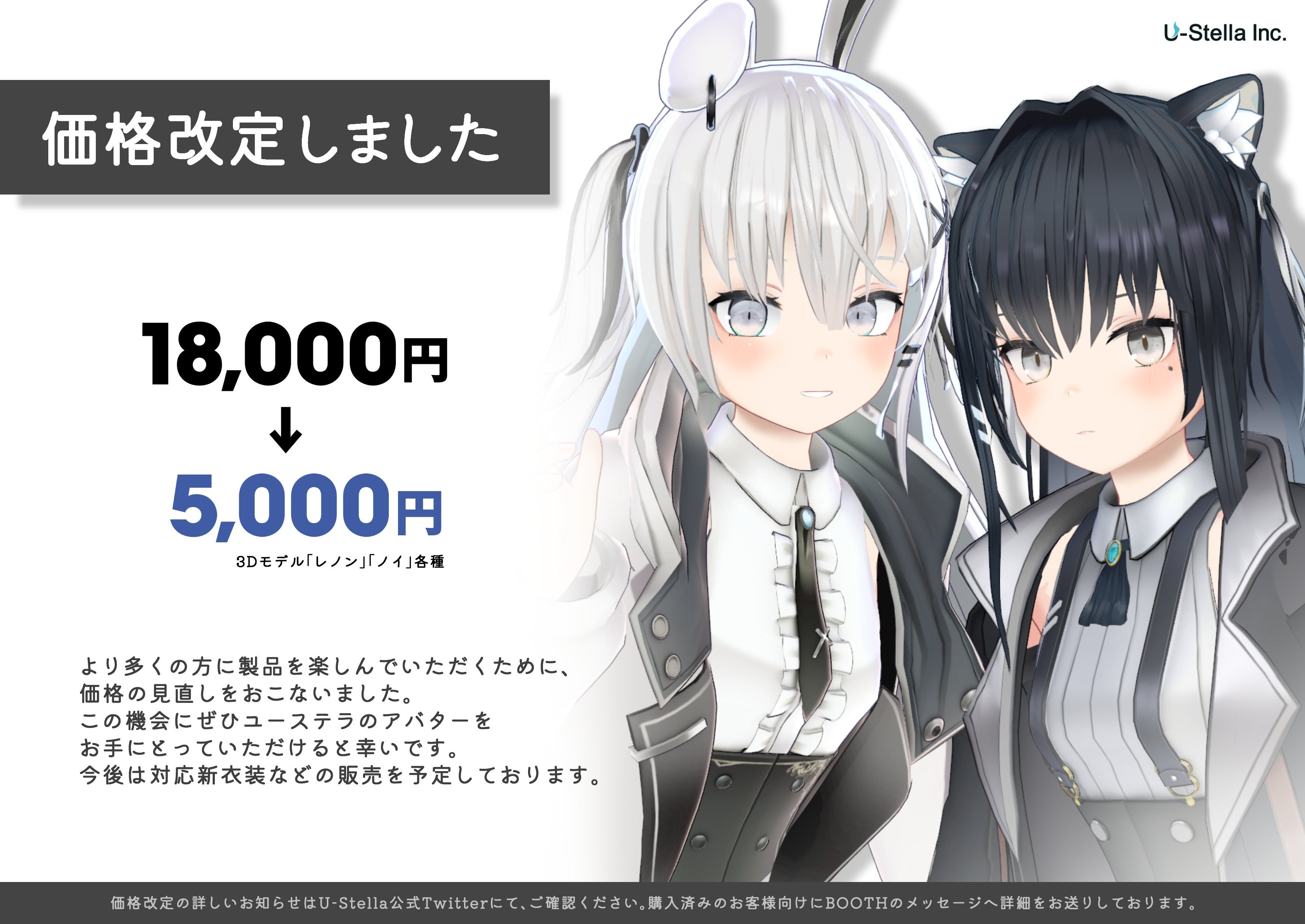 3Dモデル「レノン」「ノイ」価格改定、及びそれに伴う返金対応のお知らせ!