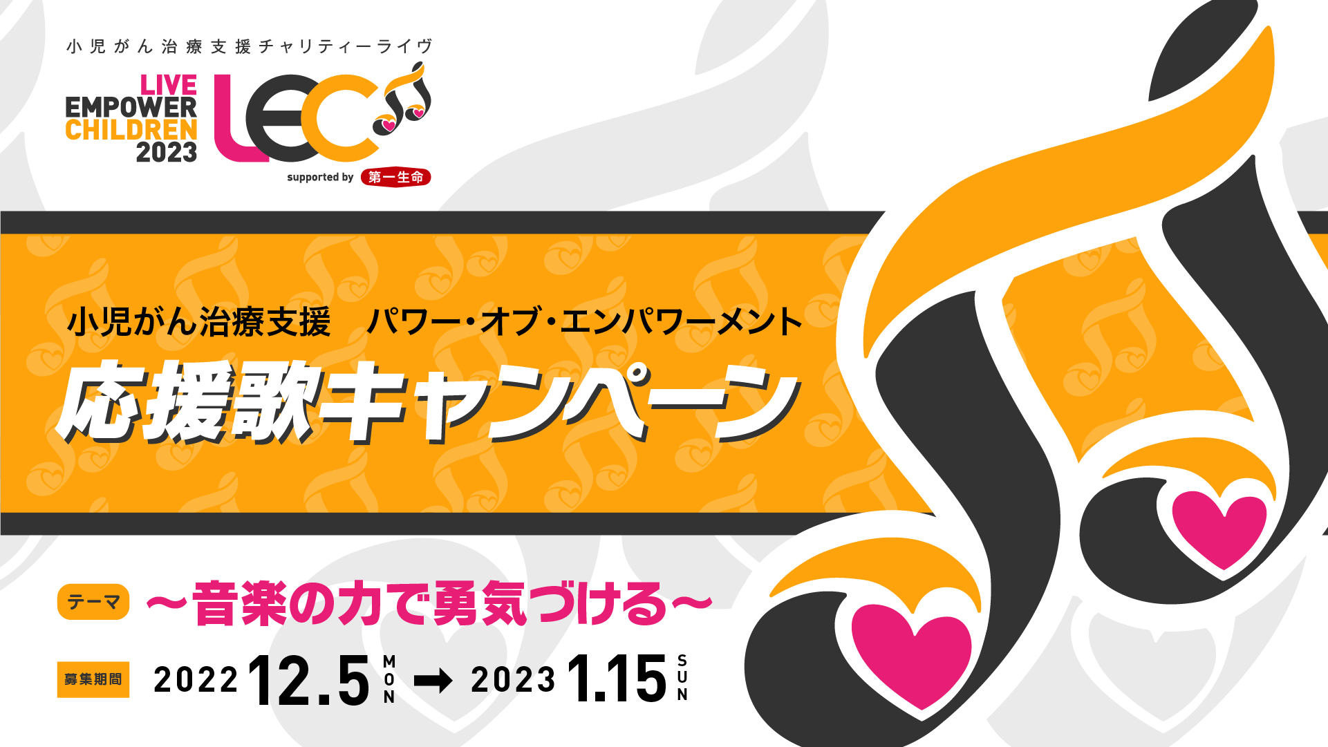 なお、最優秀者には特典として、2023年2月15日(水)に開催される「LIVE EMPOWER CHILDREN 2023 Supported by 第一生命保険」のオープニングアクトとしてご出演いただきます。