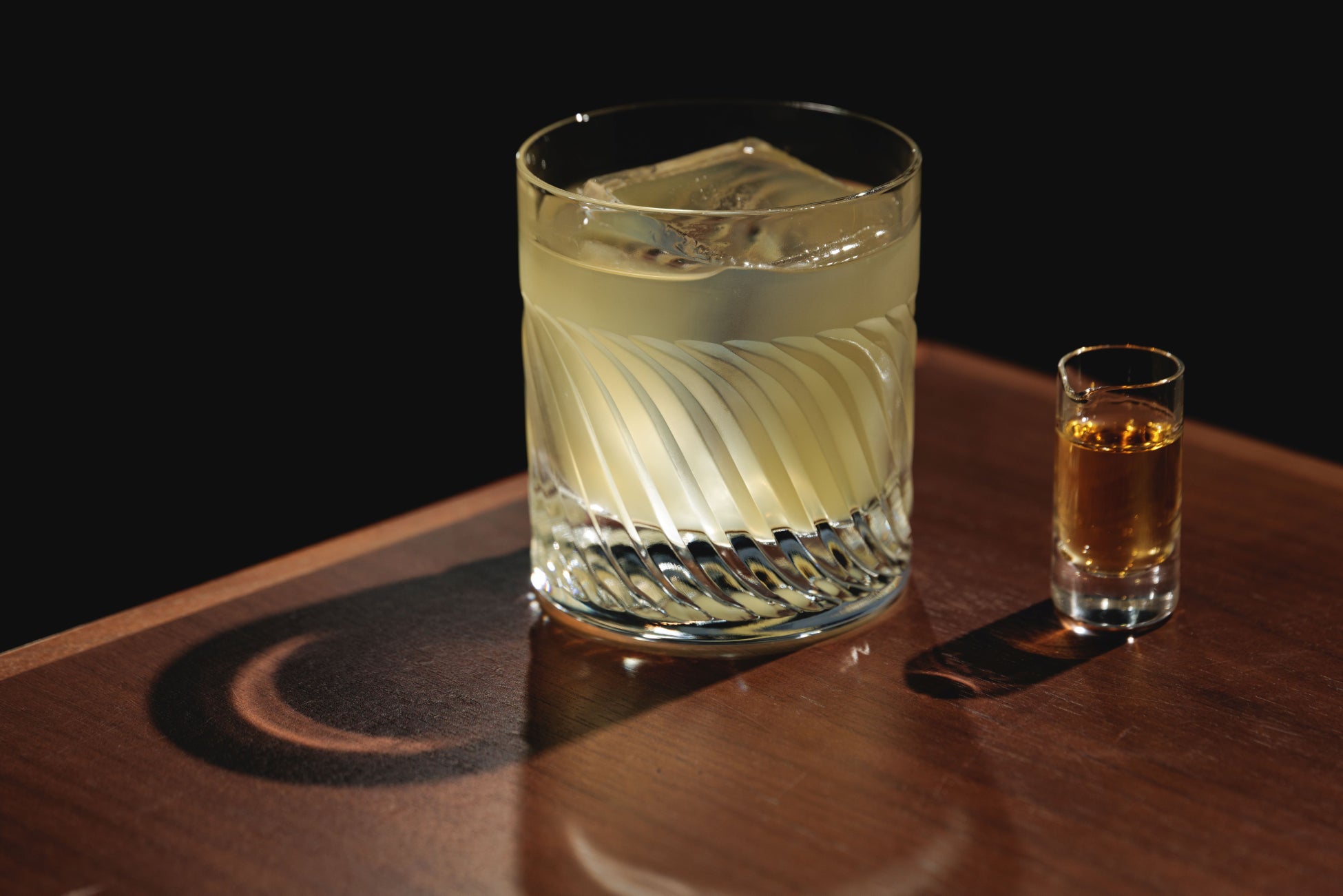 レモンジュースを主役に仕立てる、インフューズドウイスキーと自家製ハニージンジャーシロップ。別添えのラガヴーリン(アイラウイスキー)を垂らせば、爽やかだけに終わらない、もうひとつのレモンの味わいが現れます。