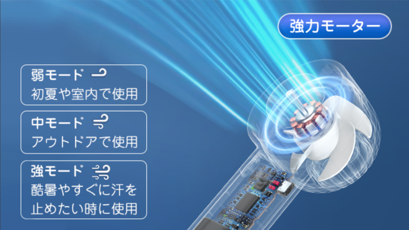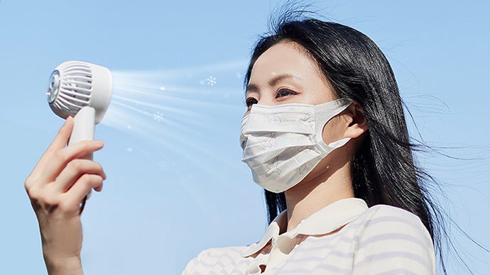 ボタンを押すだけで暑さを吹き飛ばし、夏のマスクのムレ対策としても大活躍できそうです!