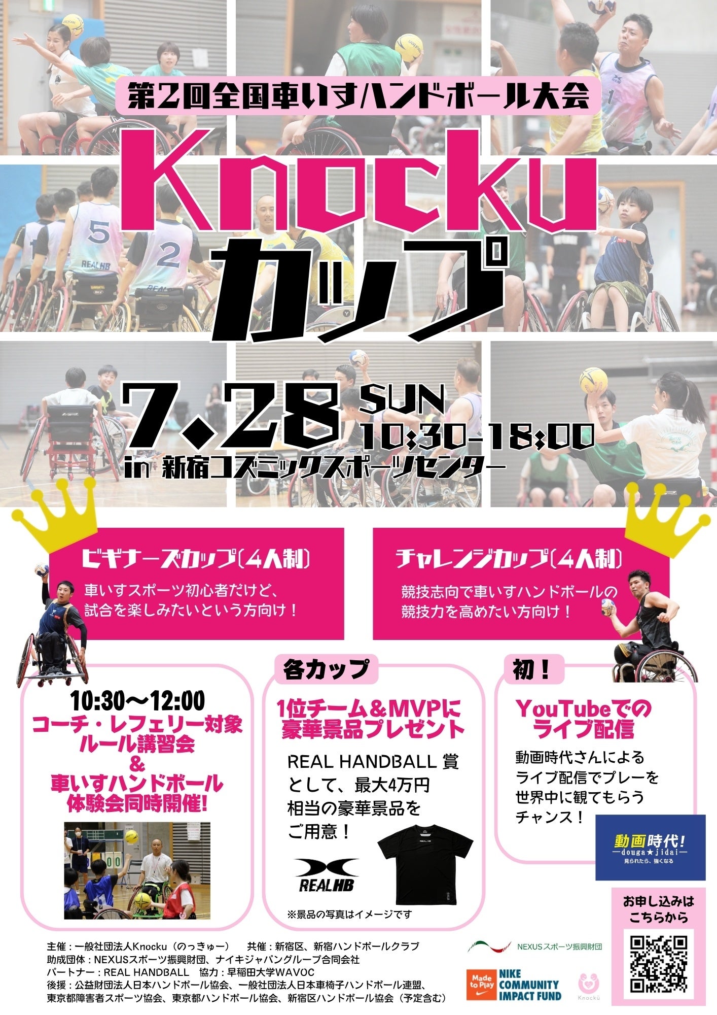 Knocku、7月28日(日)に車いすハンドボールの競技大会「第2回全国車いすハンドボールKnockuカップ」を開催。