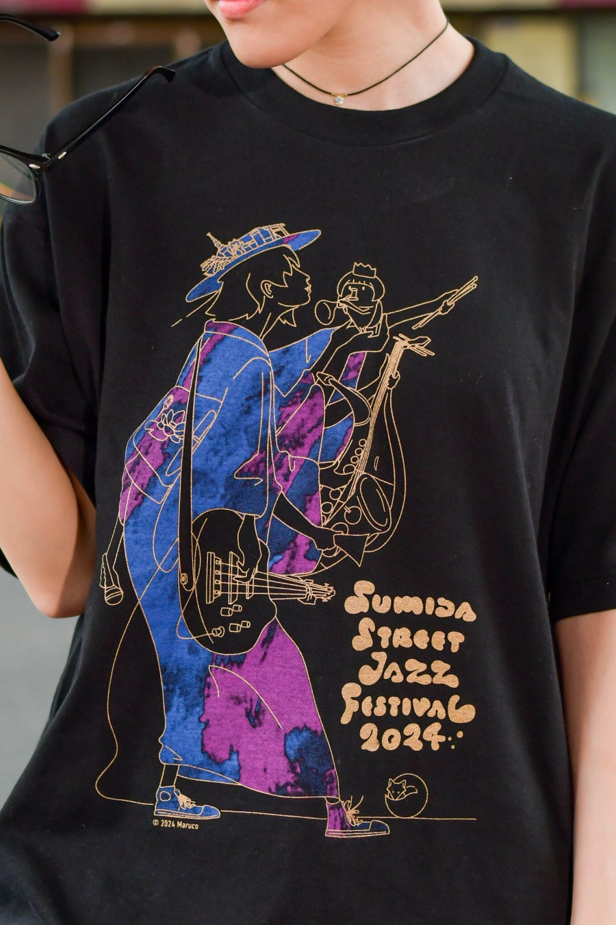 今年の「すみだストリートジャズフェスティバル」のTシャツは、円狐(まるこ)さんの作品です。