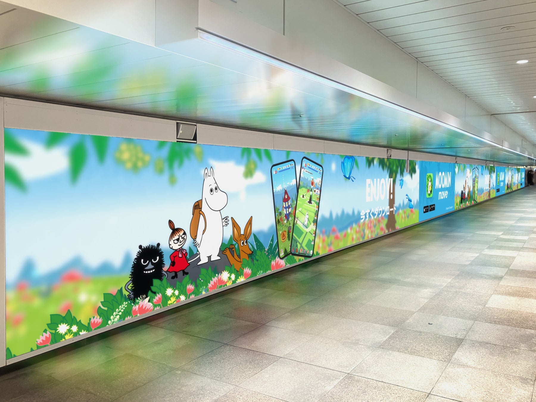 GPSロケーションベースゲーム・ムーミンムーブは実際に歩くことで、ムーミンのキャラクターたちに出会い宝箱を探して珍しいアイテムを取集できるムーミン谷の魅力を体験できるアプリです。そんなムーミン谷のキャラクター達が新宿ウォール456に登場致します!
