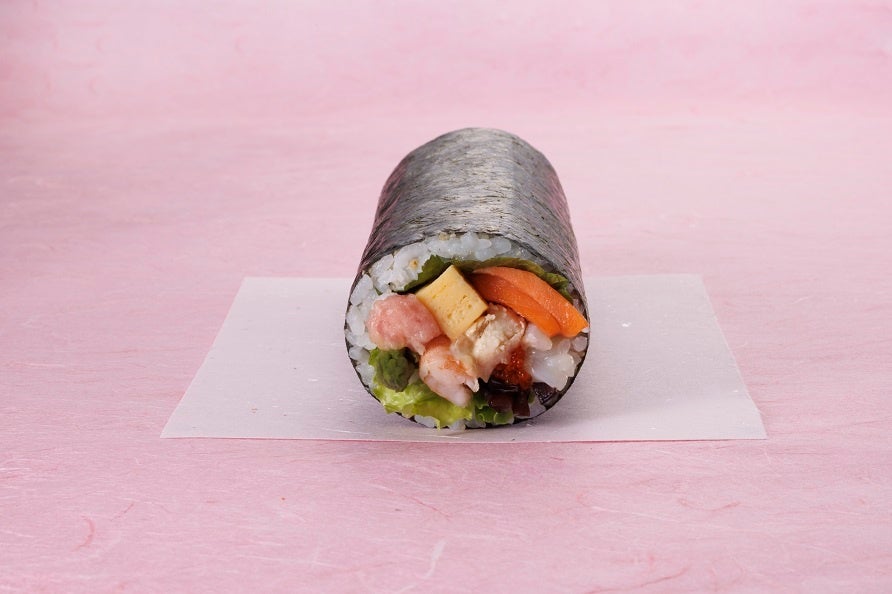 人気の5種類の魚介に海老とほたてを加えた豪華な海鮮太巻。