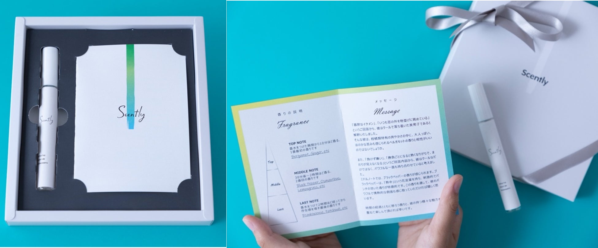 2022年4月末にリリースされたScently®は、“推し”の性格や外見の特徴を自らの解釈でオーダーシートに記入して注文すると、その推しにぴったりの香水と、「なぜこの香りが似合うのか/その推しをどのように解釈したのか」を解説した“香りの解説レター”が届くサービスを税込2,980円+送料480円でご提供しており、現在サービスの仕組みの一部においてビジネスモデル特許を申請しています。