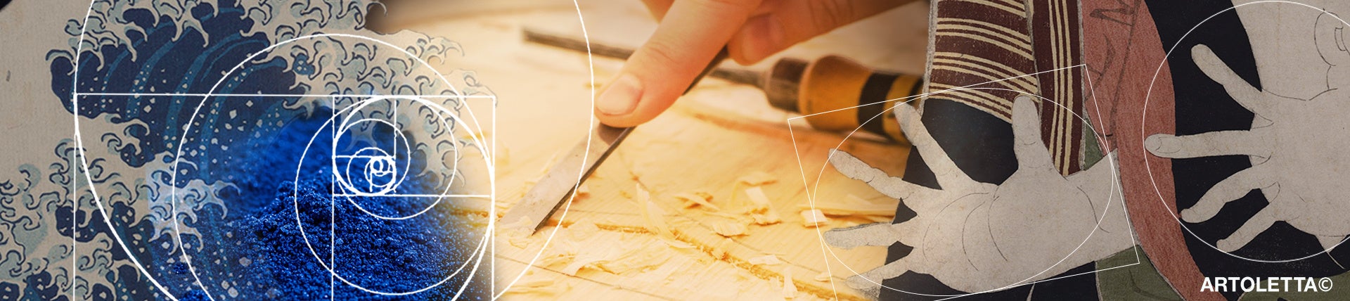 葛飾北斎の『神奈川沖浪裏』が持つ、荒れ狂う波の躍動感、色彩、構図、そしてペルシアンブルーの深み。東洲斎写楽の『三代目大谷鬼次の奴江戸兵衛』が描く、歌舞伎役者の誇張された表情と舞台の熱気。これらの名作が放つ世界を驚かせた革新的表現に敬意を払いながら、ARTOLETTA®は江戸時代の技法にも目を向けました。