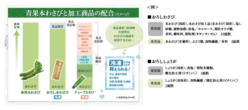 ※超低温すりおろし製法は、主にわさび商品に使用している製法です。他の香辛料ではそれぞれに合った冷凍製法を採用しています。
