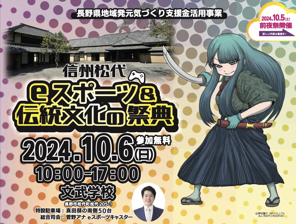 10月6日(日)に「信州松代 eスポーツ&伝統文化の祭典」を文武学校で開催いたします。