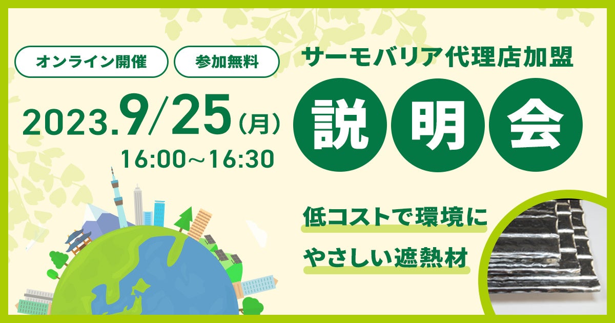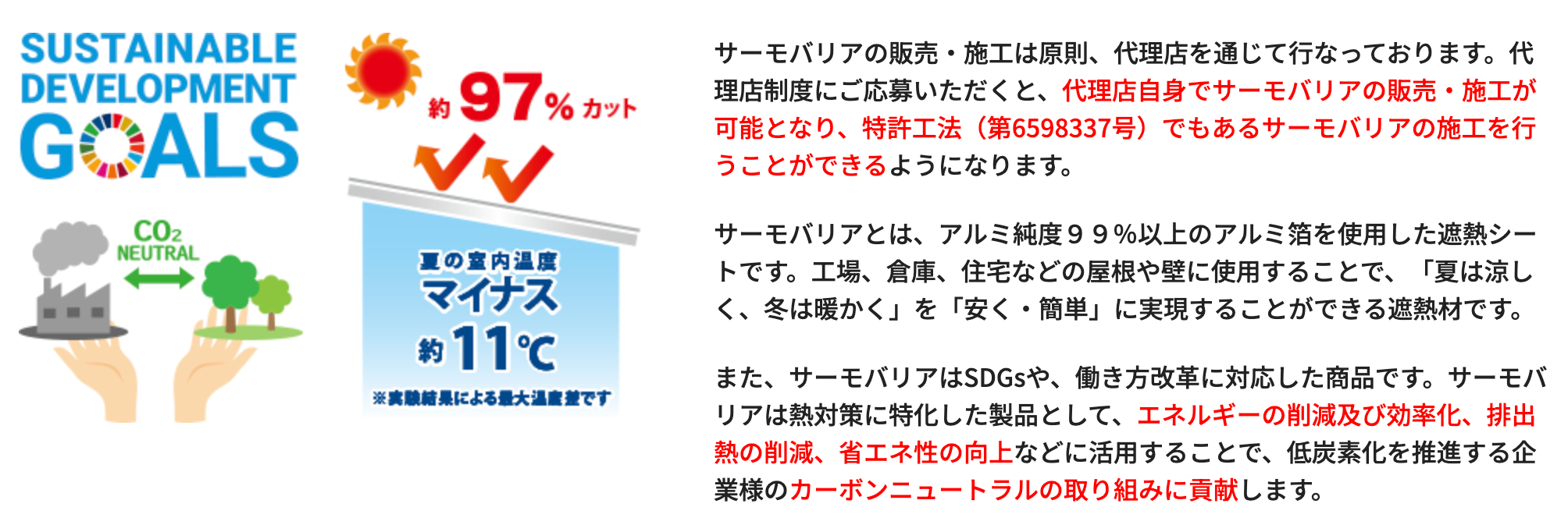 【9月25日(月)16:00〜@zoom開催】サーモバリア代理店加盟説明会|工場・倉庫の「熱問題」の解決につながる遮熱材「サーモバリア」で、SDGsに貢献しよう。