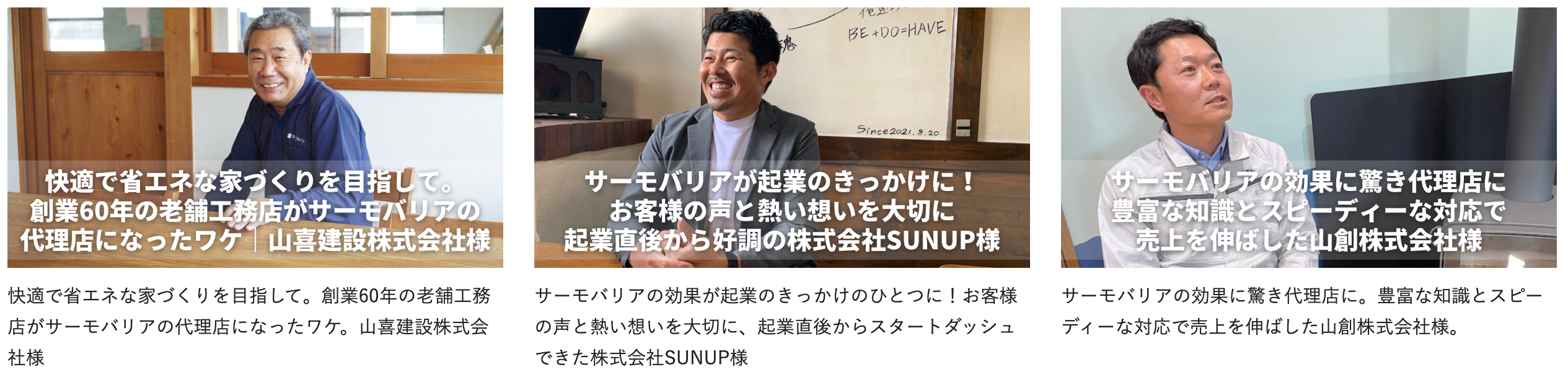以下は、サーモバリアの代理店として活躍してくださっている3社からのコメントです。