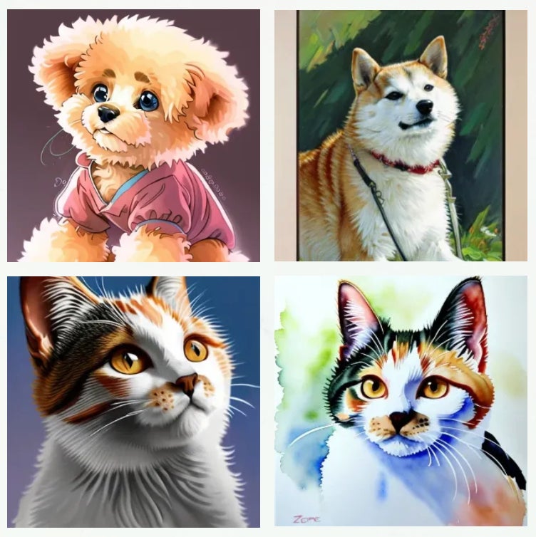 ペットの画像を10枚送るだけで、様々なテーマのイラストを作成するサービス。