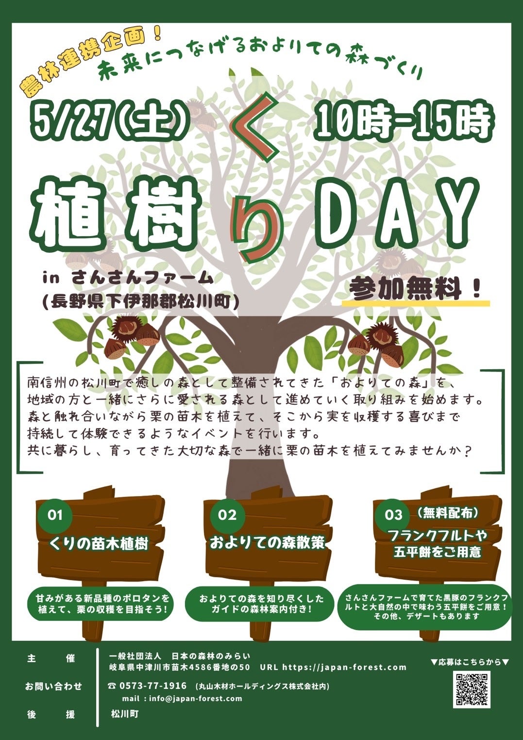 長野県下伊那郡松川町で植樹イベント「植樹くりDAY」を5/27(土)に開催