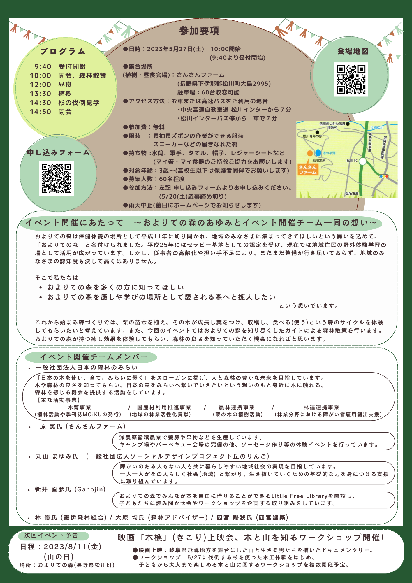 ~松川町の癒しの森である“およりての森”を盛り上げよう~