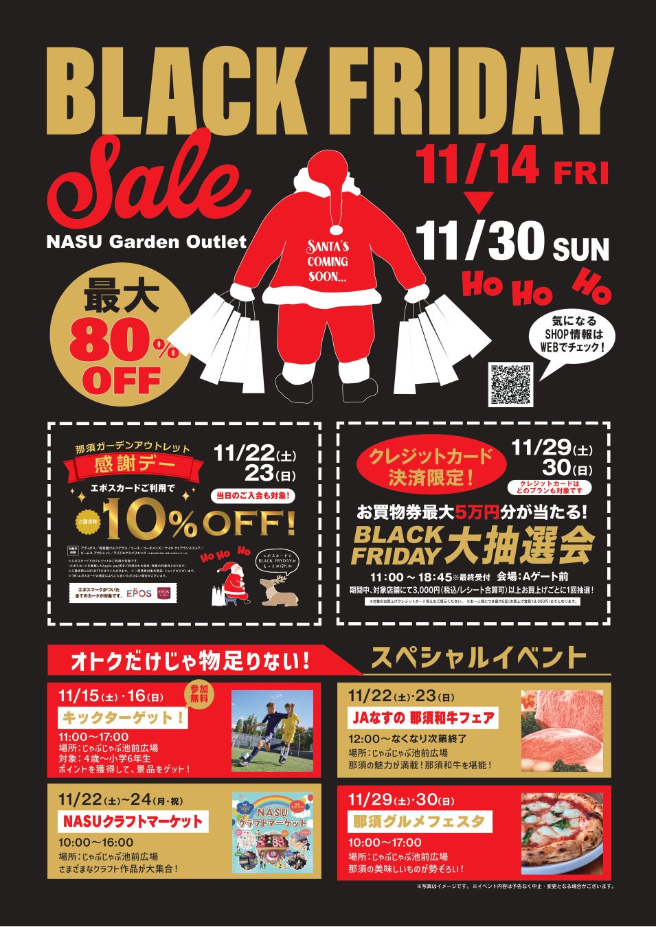 那須ガーデンアウトレットでは全館を挙げて「BLACK FRIDAY SALE」開催中!