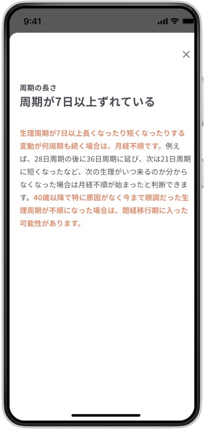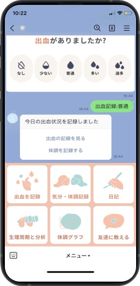 これまでの月経管理アプリは10代後半〜30代前半の方がメインユーザーであり、妊活やPMS予測などが主な管理目的でしたが、ルミナは35歳〜歳の女性に適した新しい月経(出血)・体調管理アプリです。このアプリでは、自分の更年期の段階を提示する機能や、プレ更年期〜更年期世代に起こりがちな月経の不順に対しての分析・アラート機能などを有しており、LINEで簡単に記録管理を行えるのが特徴です。