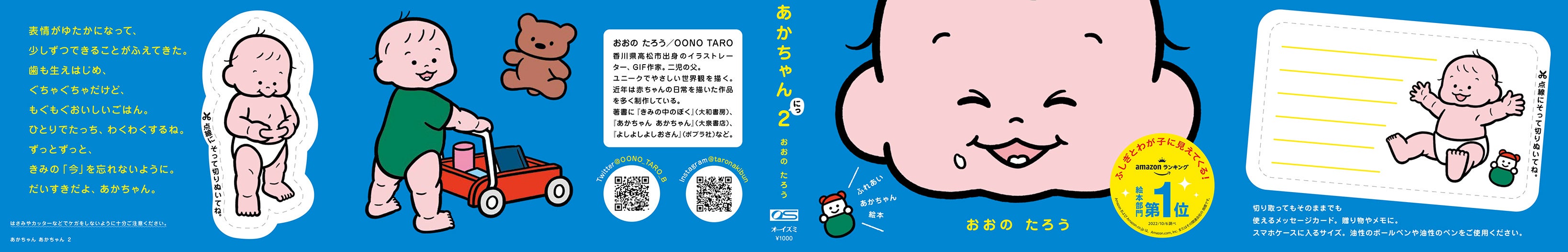 | 前作より出来ることが増えて、目の前の全部が楽しくてしかたがない! そんなあかちゃんの成長する姿を描きました。 あかちゃんはどんなことも笑いにしてしまうミラクルウルトラエンターテイナー! 親子で真似っこしながら楽しんでもらえたら嬉しいです。 |