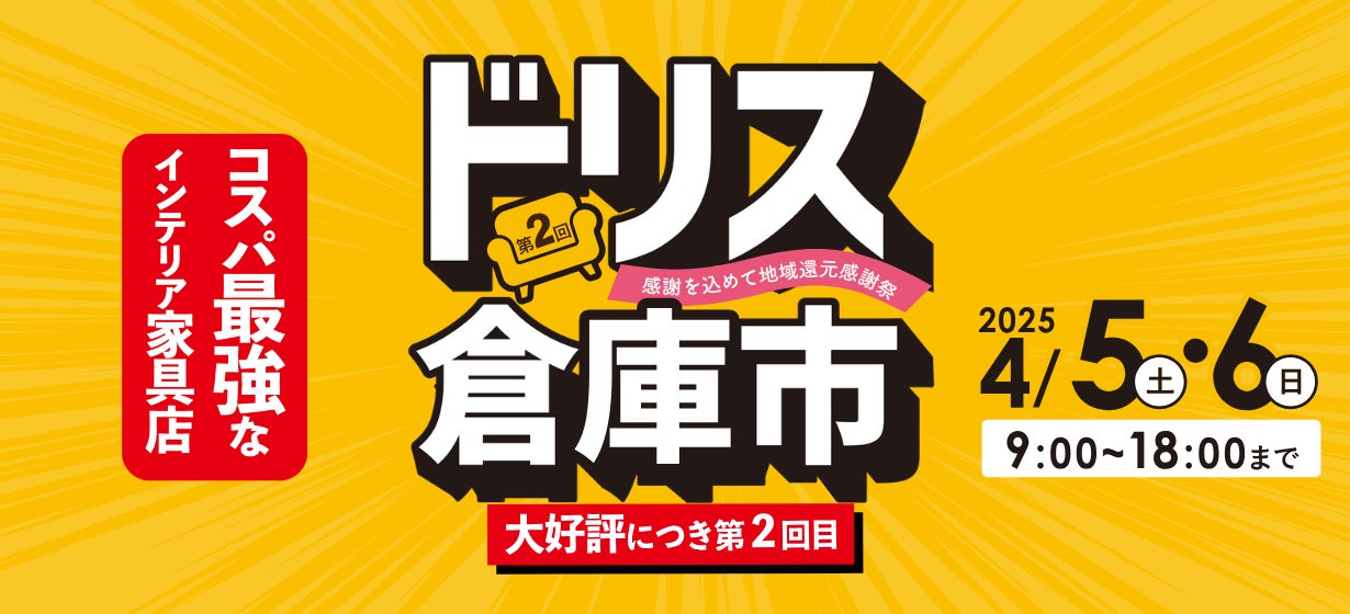 【ドリス倉庫市】遊んで!食べて!家具もお得にゲット!コスパ最強なインテリア家具店「ドリス」による第2回倉庫市の開催が決定!