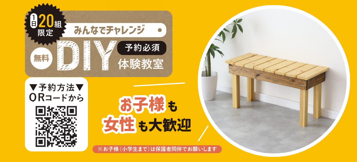 前回も大変好評だったイベント、お子様連れでご来場予定のお客様にもおすすめな催しとなっております。DIY教室のご予約方法は、QRコードからご登録いただけます。