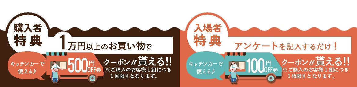 ・1万円以上のお買い物でキッチンカーで使える500円オフクーポンがもらえる