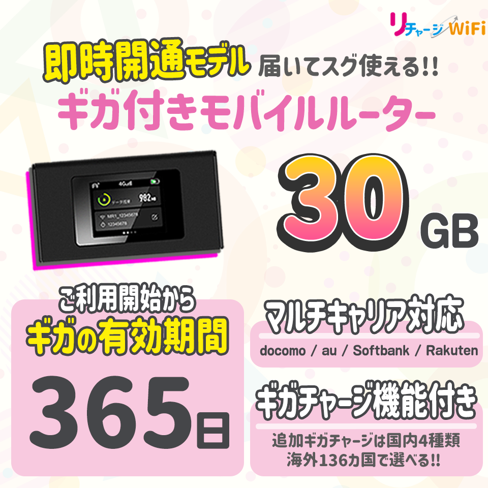買い切り式モバイルWiFi【リチャージWiFi】全商品の開通申請が不要になり、さらに新プラン30ギガの販売開始‼海外プランも拡充し136カ国対応となりました。