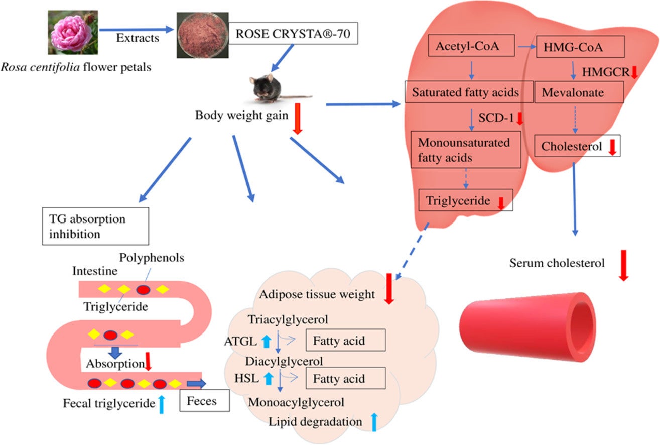 *Ye, Y., Kawaguchi, Y., Takeuchi, A.,et al.Rose polyphenols exert antiobesity effect in high-fat–induced obese mice by regulating lipogenic gene expression. Nutr Res. 2023;119:76-89