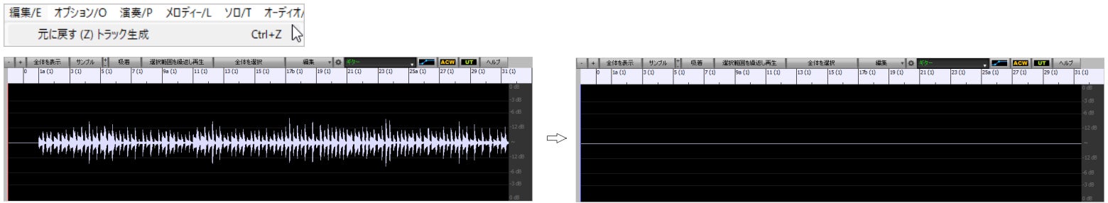 トラック (全体または一部) を生成した後、編集メニュー>元に戻すか [Ctrl]+[Z]キーを使って生成前の状態に戻すことができます。