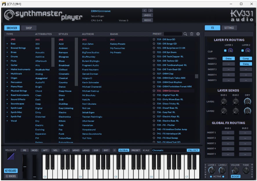 KV331 Audio 開発のソフトウェアシンセサイザーSynthMaster Playerが付属します。これにはたくさんの音色も含まれており、特にモダンやテクノのサウンドクリエーターとしてご利用頂けます。