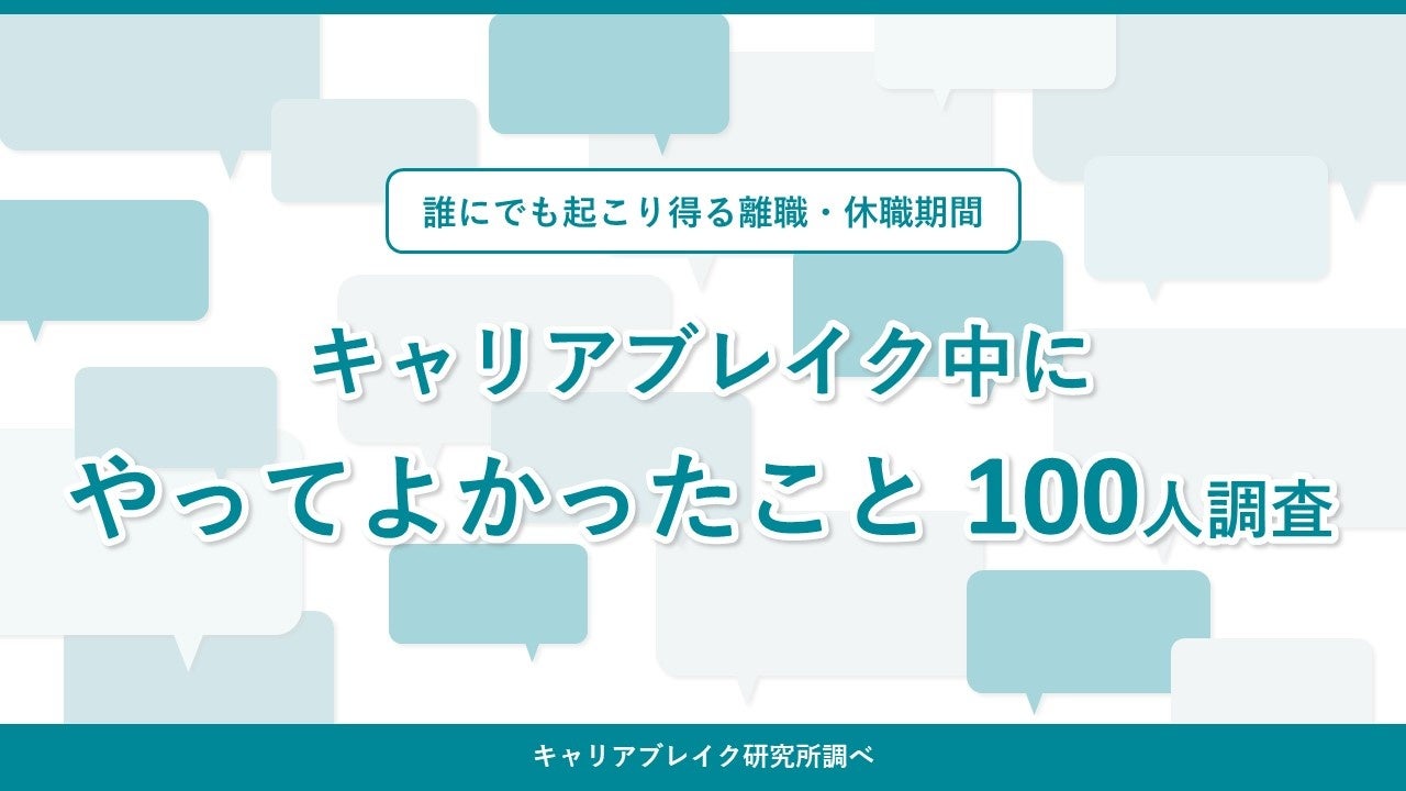 人生に一時的なブレイクを取り入れる「キャリアブレイク」という考え方を研究・発信している一般社団法人キャリアブレイク研究所(所在地:神戸市垂水区、代表理事:北野貴大、以下:同研究所)は、離職や休職を経験した人に「キャリアブレイク中にやってよかったこと」を調査。103人から293の「よかったこと」の回答が得られました。