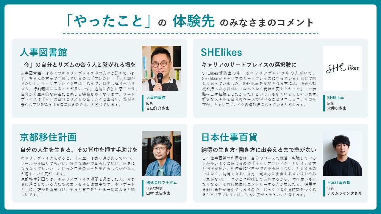 キャリアブレイク中の人たちが過ごした体験先(共感パートナー)のみなさまからのコメント