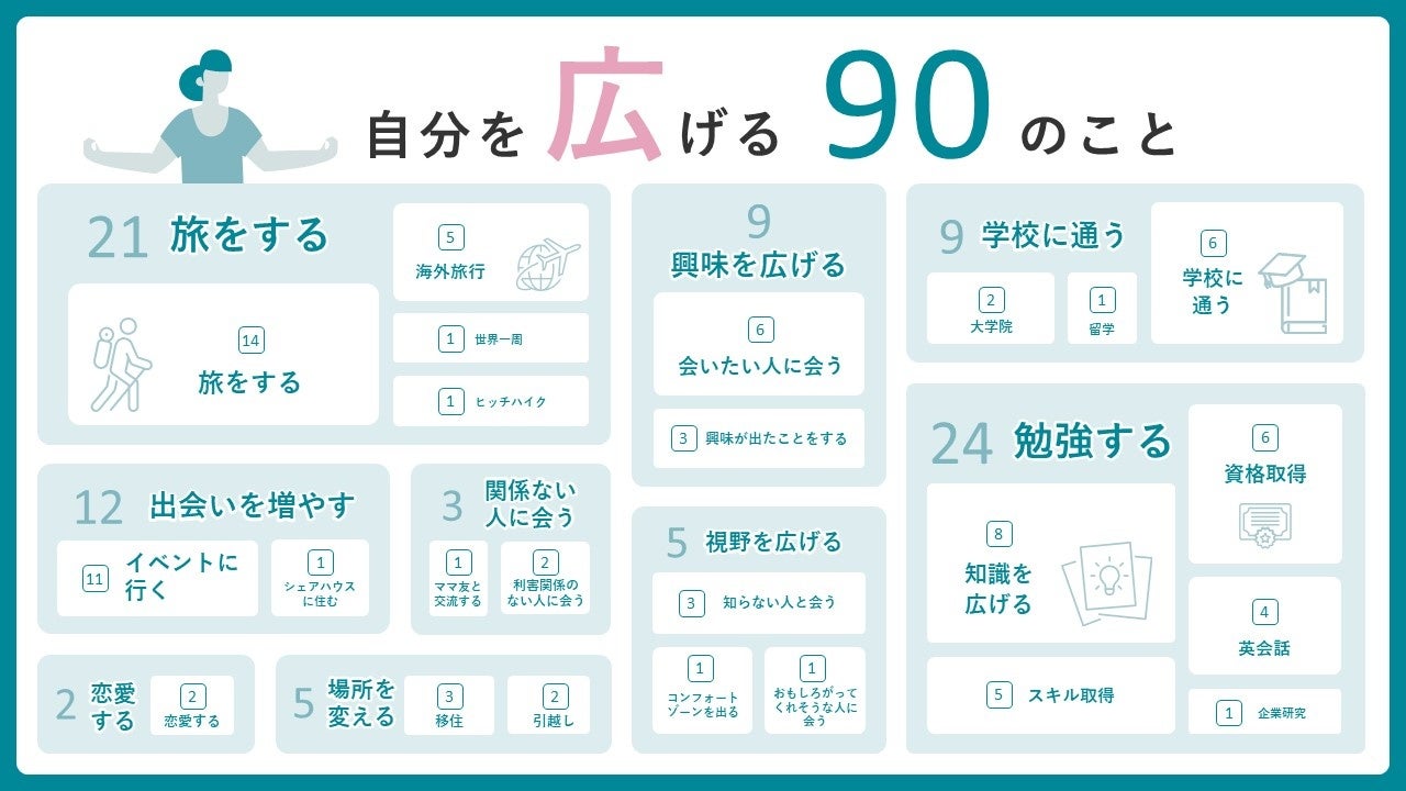 293の回答の中で最も多かった「旅をする」の中でも「ヨーロッパへの1ヶ月旅行」と答えた30代女性からは、「自分が何を大事にしているのか耳を澄ます時間になった。振り返ってみて、一生のうちにやらなかったら後悔してた」とのコメントも得られました。