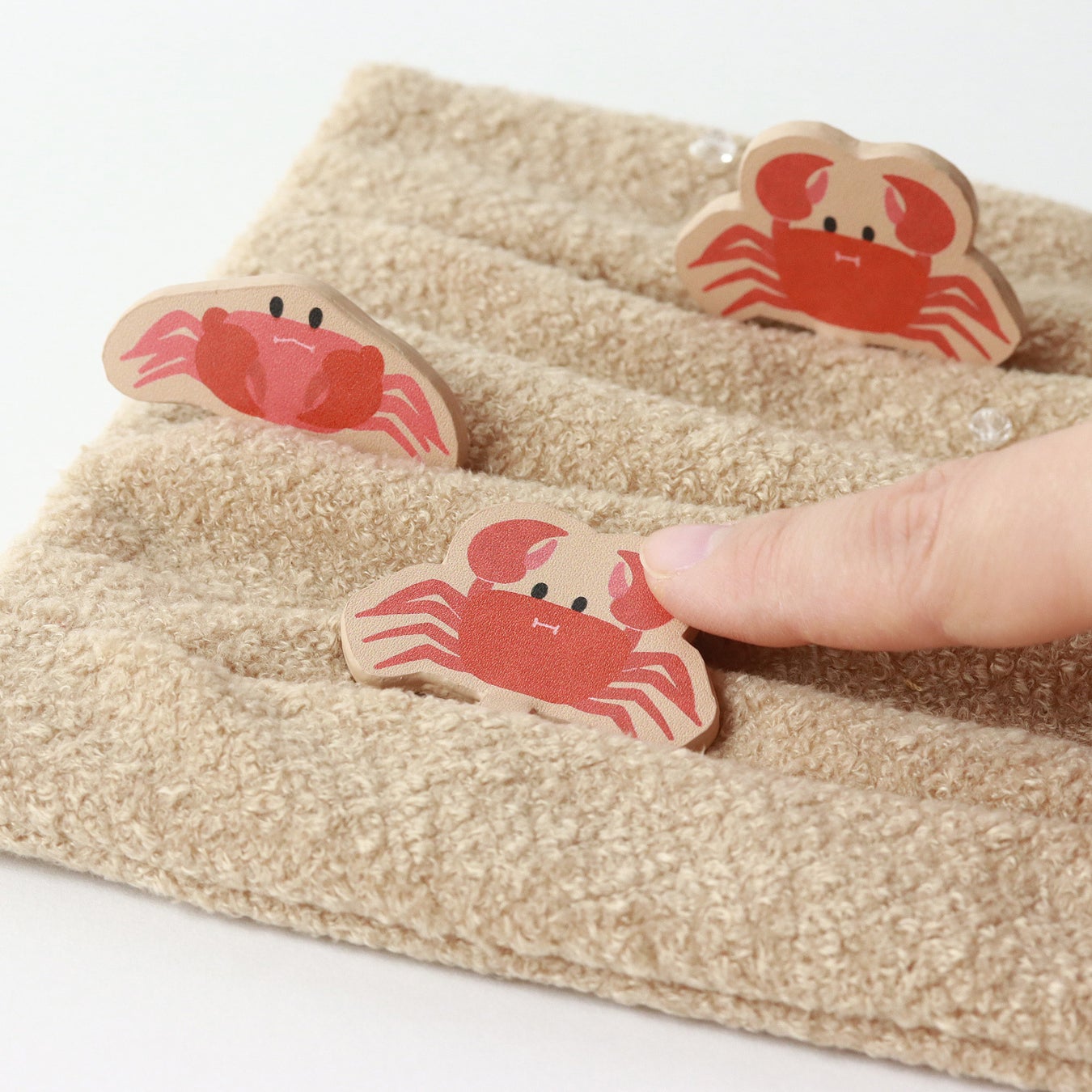 ファスナートップには、自立するカニのパーツが3匹ついています。
