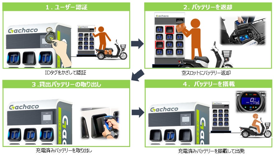 ※Gachacoステーション:電動バイクのバッテリーを街中で自由に交換できるステーション