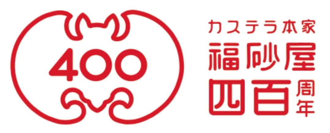 400周年ロゴは、福砂屋のアイデンティティでもある登録商標の「蝙蝠ロゴ」と「400(周年)」をシンプルに表現。とりわけ縁起が良いとされている“赤い色“の蝙蝠をイメージし、椿桃(朱色)で彩りました。