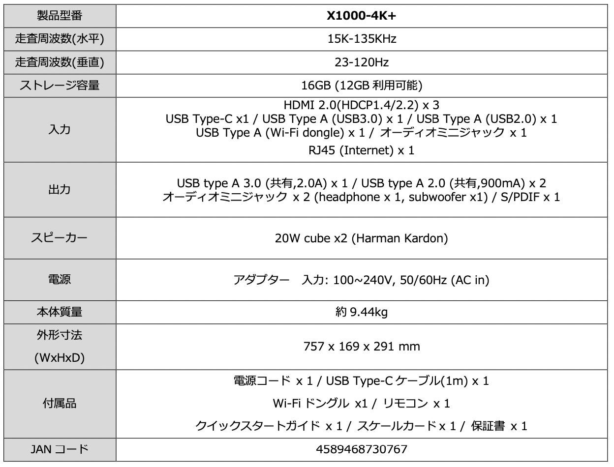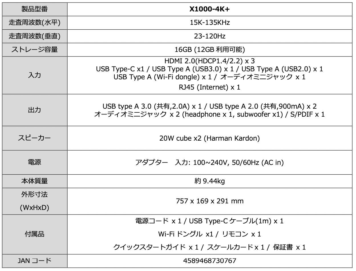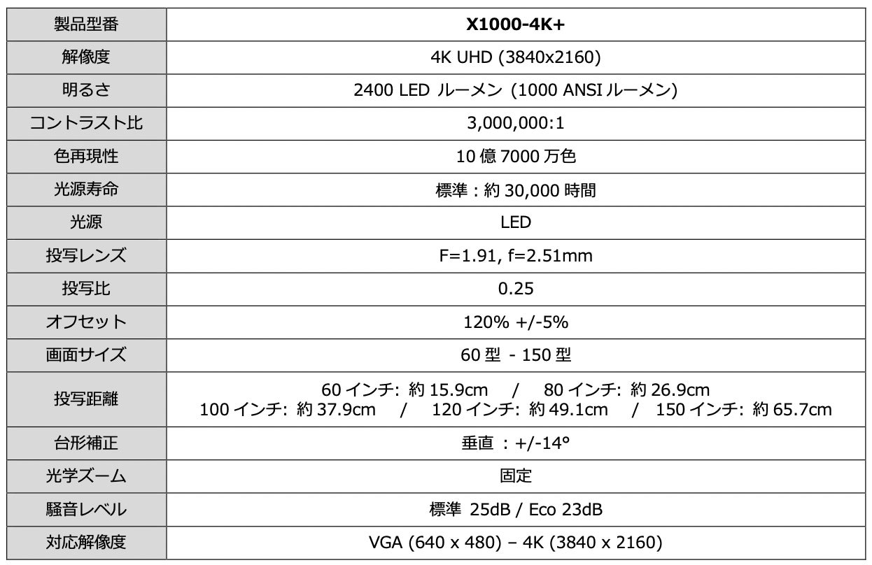 - 【X1000-4K+ | 4K HDR超短焦点LEDプロジェクター】
