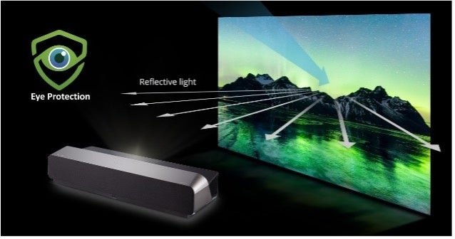 さらに、アイプロテクション機能を搭載することで、超音波で物体を検知して投写光を自動的に遮断します。お子様がいらっしゃるご家庭でのご使用でも、投写光で目を痛める心配をすることなく、よりリラックスしてプロジェクターの大画面体験を体感できます。