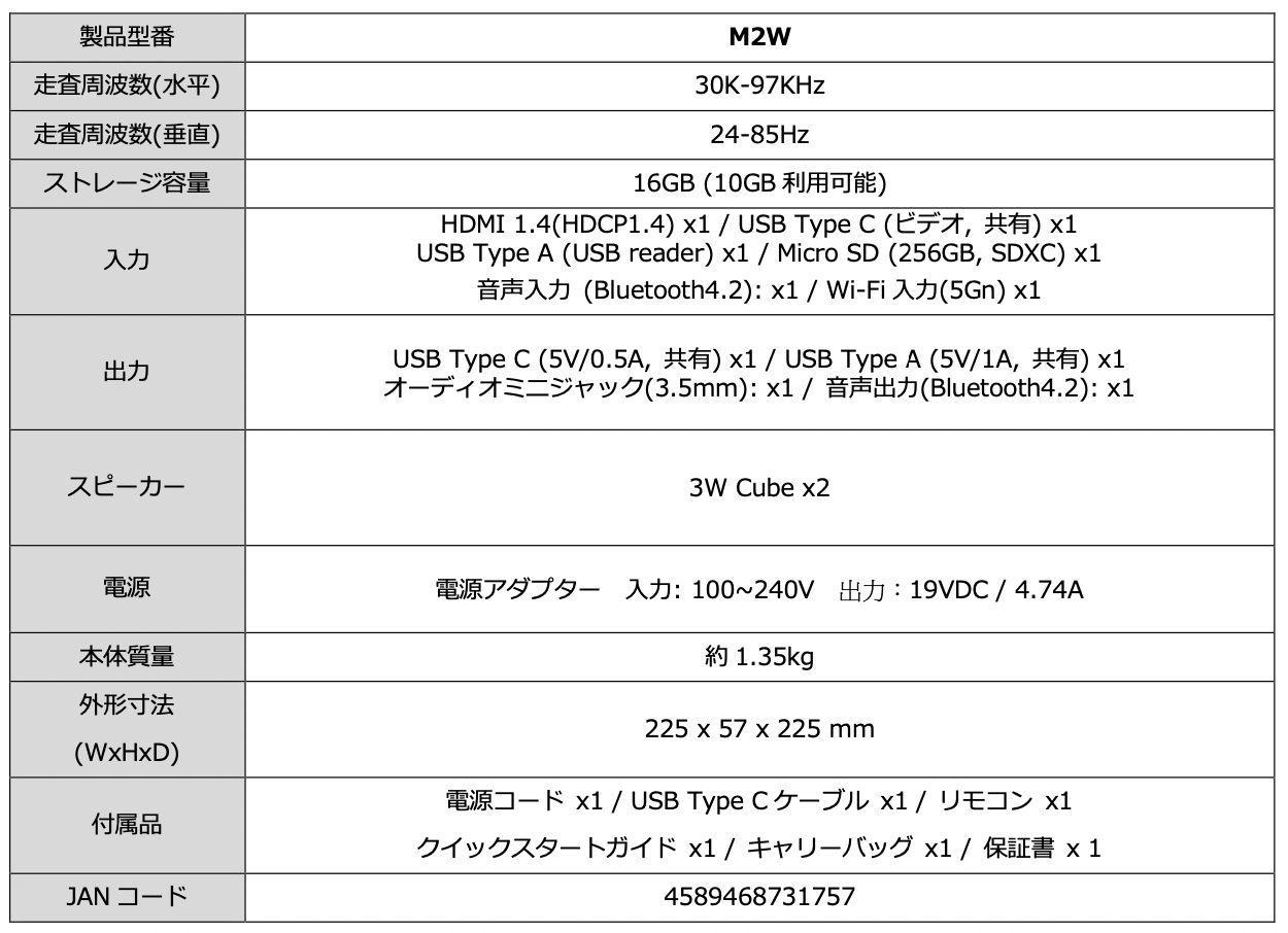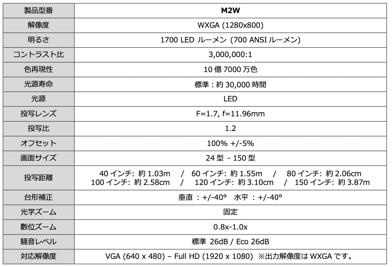 - 【M2W | 高輝度ポータブルLEDプロジェクター】