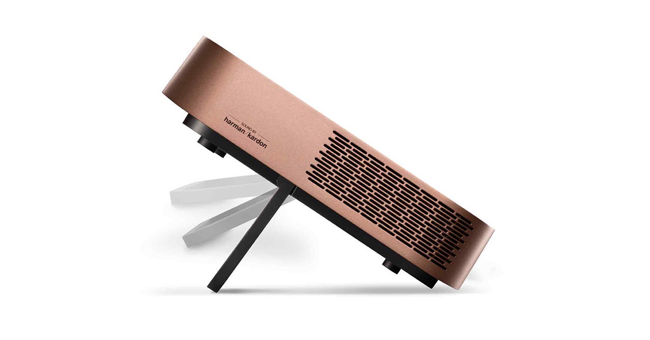M2Wは投影の明るさと、持ち運びに便利なコンパクトなサイズで、どこにいても大画面を楽しめるスマートポータブルLEDプロジェクターです。最大150インチの大画面を映し出すことに加えて、Harman Kardon社が調律した内蔵デュアルスピーカーによって、オールラウンドな没入型体験をお楽しみいただけます。さらに、インスタントオートフォーカス(自動台形補正と四隅の調整)など業界をリードする最先端の機能を搭載することで、設置場所や角度を問わず、簡単にセットアップすることができます。また、ブラックレザーとメタリックな質感を採用したボディは、カジュアルからビジネスまでどんなシーンにも馴染む上品なデザインです。