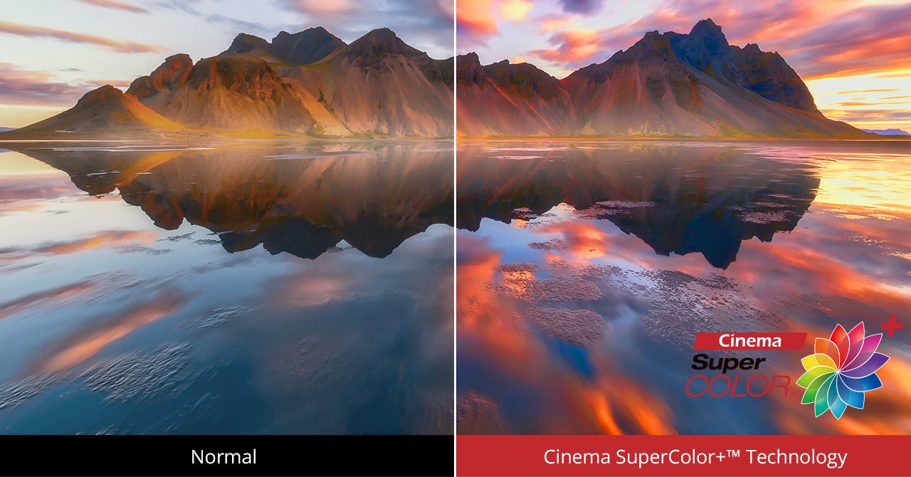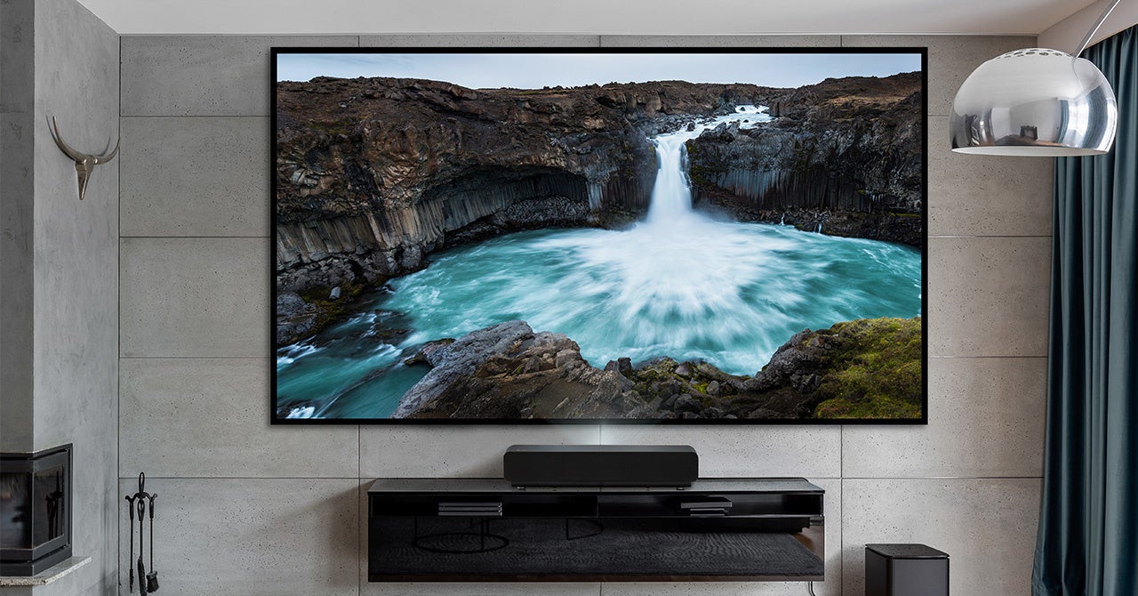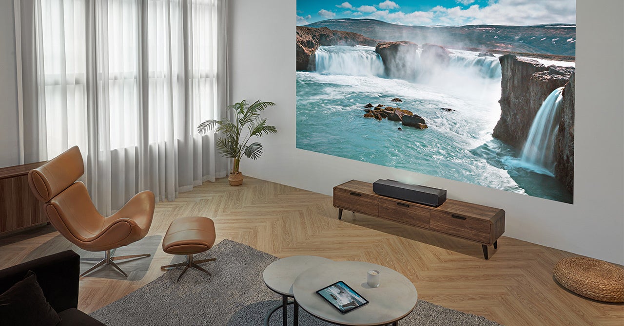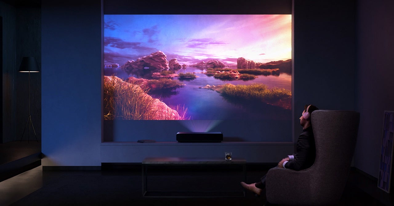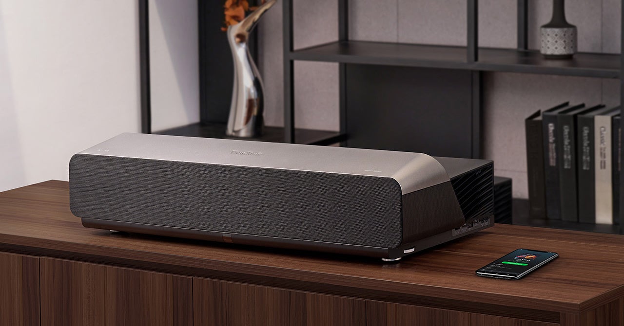 わずか2.6mの距離から100インチの画面を映し出すことができ、さらに自動台形補正などの機能を使うことで、さまざまなスペースで大画面エンターテインメントをお楽しみいただけます。