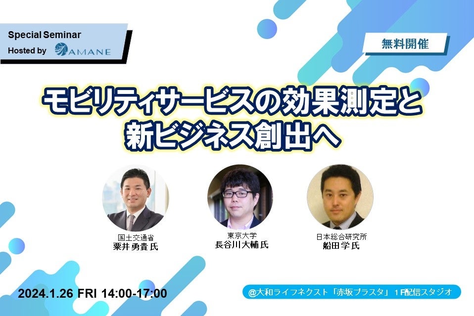 国交省・東京大学・日本総合研究所が登壇「モビリティサービスの効果測定と新ビジネス創出へ」2024年1月26日(金)開催