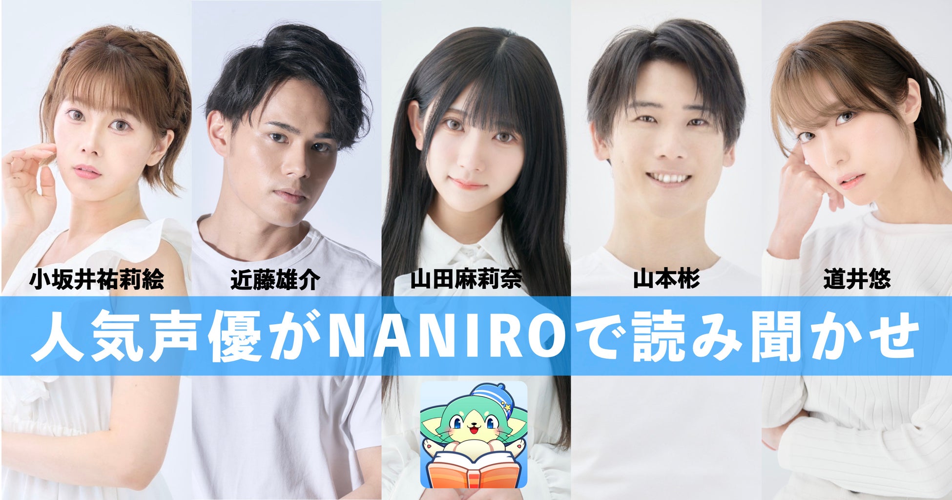 人気声優の小坂井祐莉絵さん・近藤雄介さん・山田麻莉奈さん・山本彬さん・道井悠さんが読み聞かせる!絵本アプリ「NANIRO(ナニーロ)」が新コンテンツを公開