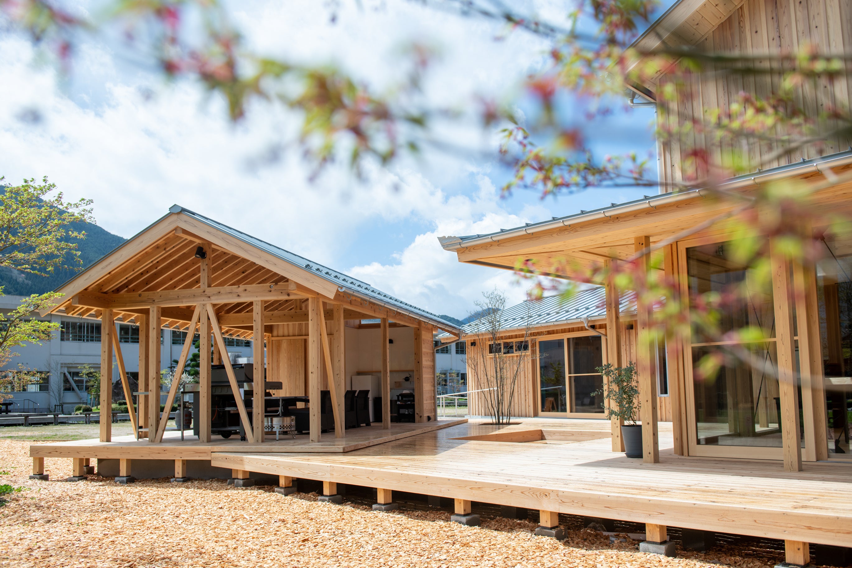 森林資源の利用促進につながる情報発信拠点として旧校舎を新たに再建し、全国的に課題となっている「廃校」と「森林資源」の利活用を掛け合わせることで、「里山の自然」と「地域経済」両面の好循環につながる地域デザインの構築に取り組んでいます。