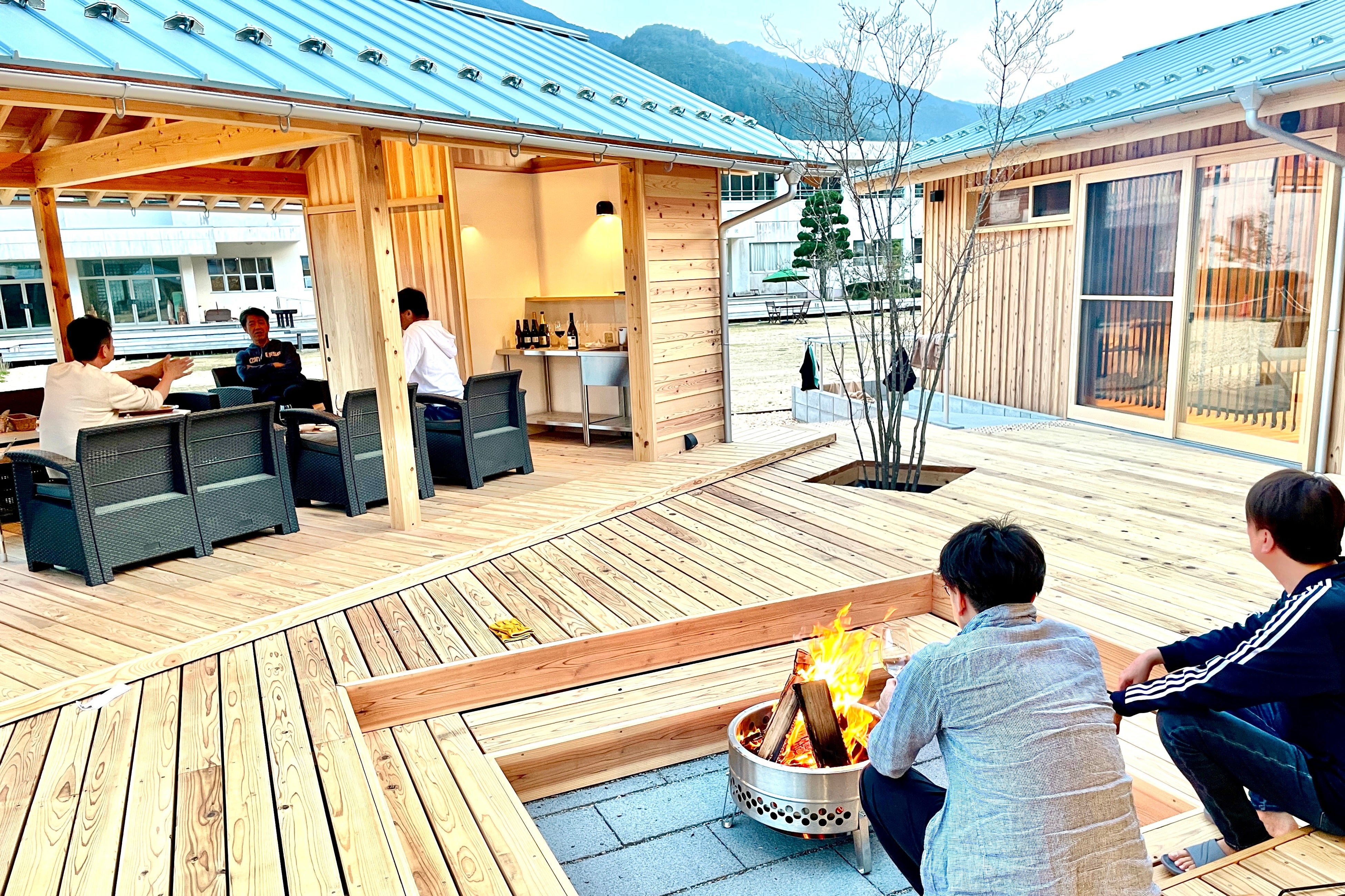 今回のリニューアル計画の要として、2023年4月23日(日)に1日1組限定の一棟貸しの宿、ウッドヴィラ「心楽 -SHIGURA-」を開業。施設内に薪ストーブや薪ボイラーを設け、屋外に掘りごたつ式の焚き火スペースや、雨でもBBQができるインナーデッキ。また専用のサウナエリアまで全て貸切でご利用いただけます。木に触れる様々な体験を通して、木の温もり溢れるリラックス空間で、ご利用のお客様に“木を楽しみ、心和むひとときを”提供いたします。