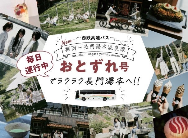 2022年7月に運行開始した、福岡県・博多と山口県・長門を直接つなぐ、西日本鉄道株式会社(西鉄)の高速バス路線。「福岡~長門湯本温泉線」を毎日一往復しています(天神-長門湯本温泉間片道約2時間45分)。「博多バスターミナル」から、温泉街の中心にある「長門湯本温泉」と「長門市役所」「センザキッチン」に発着。温泉街で使えるお得なクーポンがついた企画乗車券「そぞろ歩きっぷ」もラインナップしています。