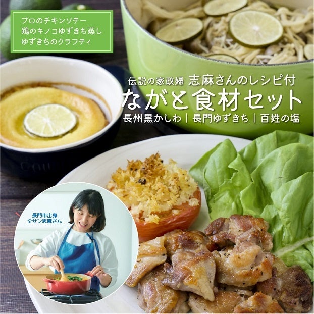 タサン志麻さんのオリジナルレシピと、長門由来の食材「長州黒かしわ」「長門ゆずきち」がセットになった山口県長門市のふるさと納税返礼品。タサン志麻さんは、2022年11月にふるさとである山口県長門市のPR大使「ながとフードアンバサダー」に就任しています。