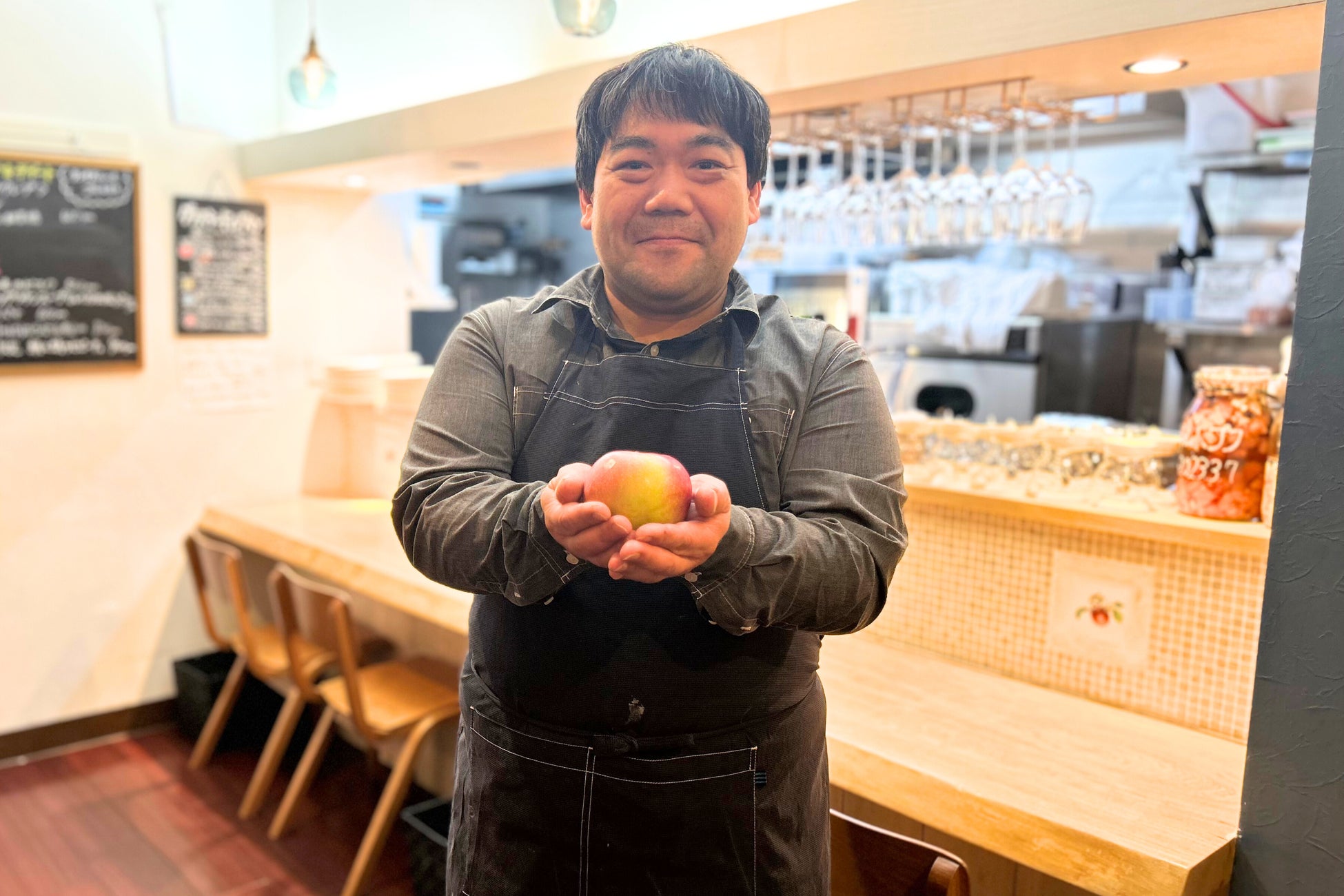 コロナ禍にオープンして3年ほど。国産そば粉100%のガレットや国内外の厳選シードルといったグルテンフリーの料理やお酒をメインに、日本古来の発酵食品である漬物や味噌をフランス家庭料理と“游合 ”させた、工夫を凝らしたメニューを提供。お客様としっかりコミュニケーションを取りたいという思いから、あえて混雑する都心部を外し三鷹に出店した。