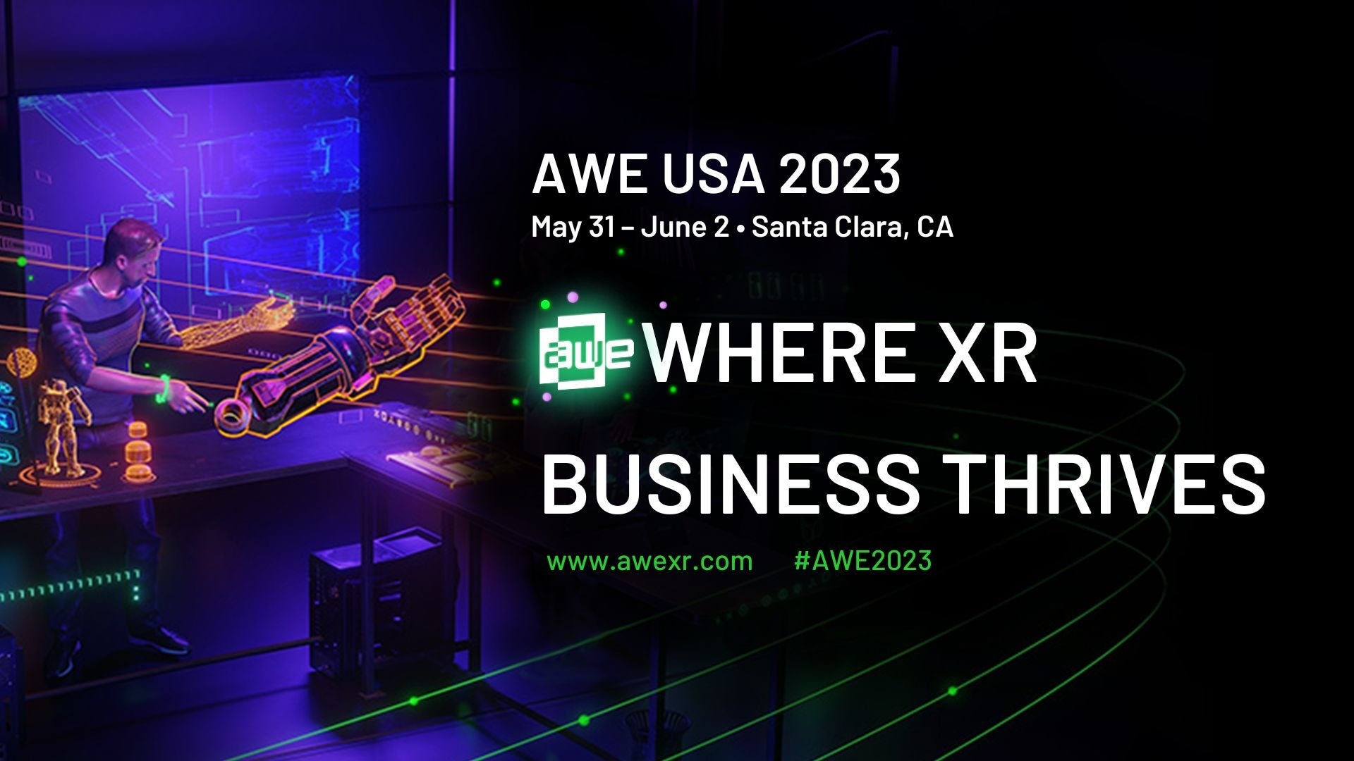 *Augmented World Expo(AWE)は、拡張現実に関する世界最大のカンファレンスです。主要な技術的課題の解決、AR/VRの新しい分野への導入、倫理的・法的問題の検討、多様性の促進など業界のリーダーたちが一堂に会して、次の10年に向けてARとVR業界の方向性について議論します。Augmented World Expoは北米、ヨーロッパ、アジアで開催されています。https://www.awexr.com/