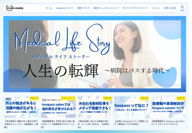 hospass mediaは、医療系国家資格を所有しつつ、病院の外で活動している方を取材するwebメディアです。現在209名の医療従事者の取材記事を公開しております(2023/04/01時点)。