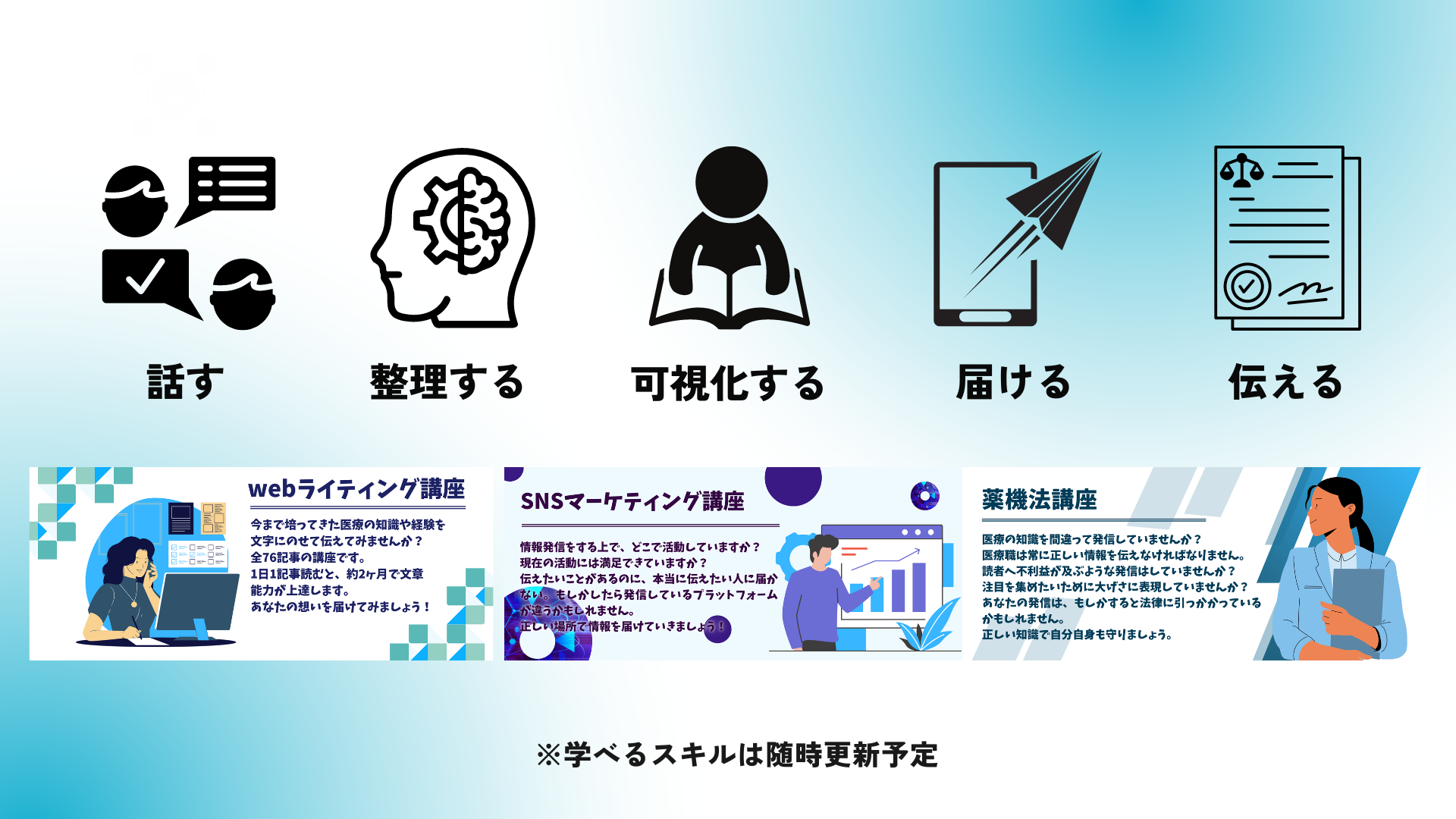 『病院はパスする時代』をスローガンに掲げ、”患者も医療職も病院に依存しない生活を送る”、”病院の中でも外でも活躍できる医療職を増やす”をミッションに日々活動しております。