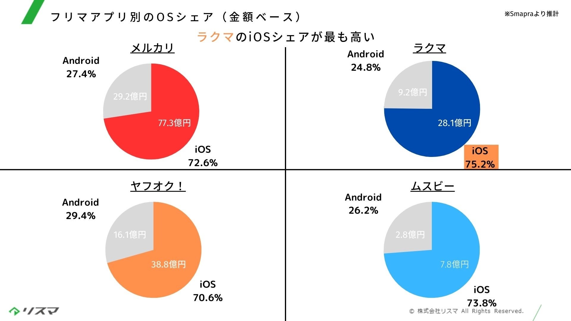 なお、フリマアプリ別のiOSシェア率は図の結果となりました。
