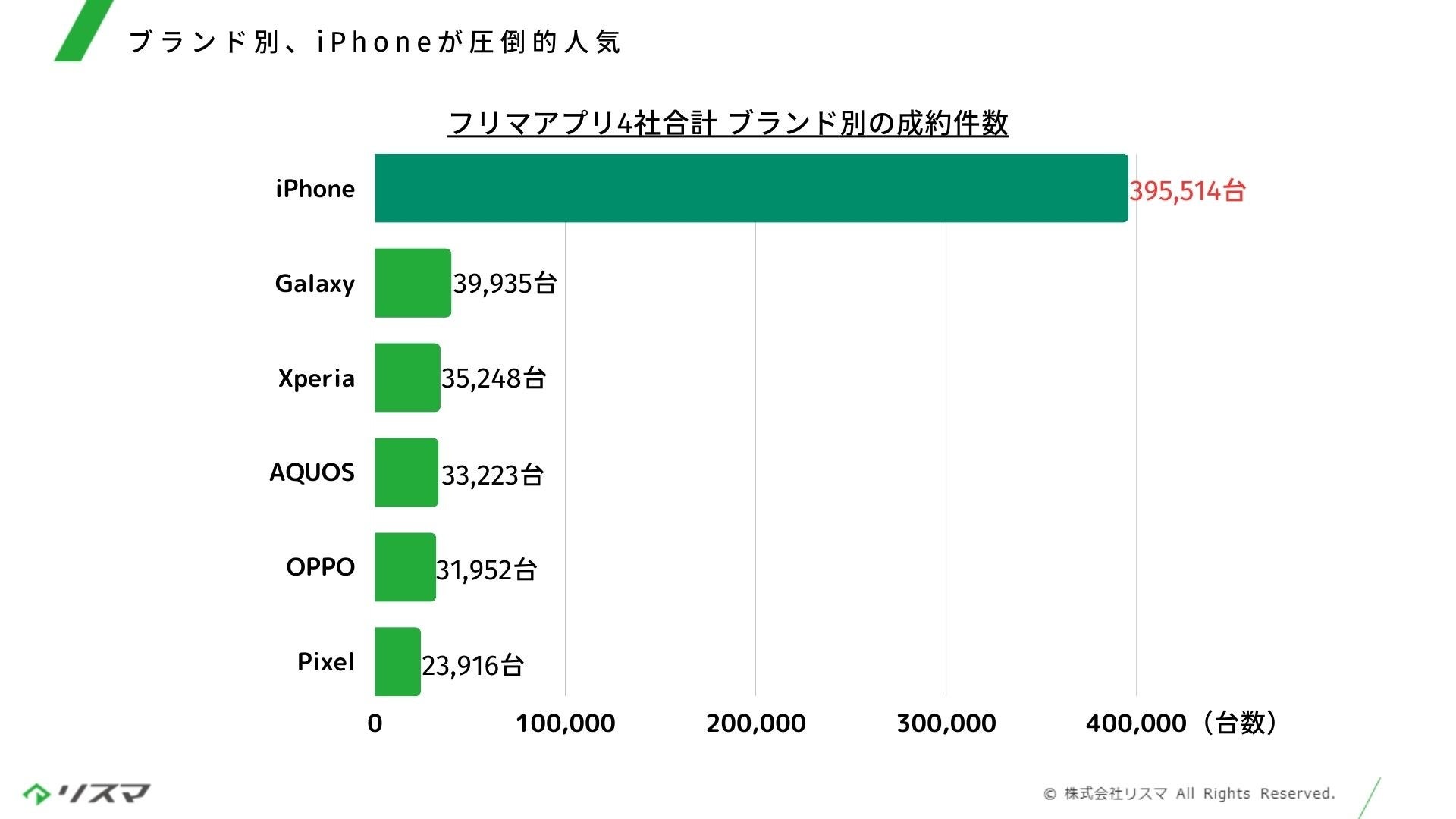 リユース業界における中古スマホは、「メルカリショップス」をはじめとするフリマアプリでの法人販売機会の増加や、売却を前提とした消費生活の定着を受け、普及が進んでいます。